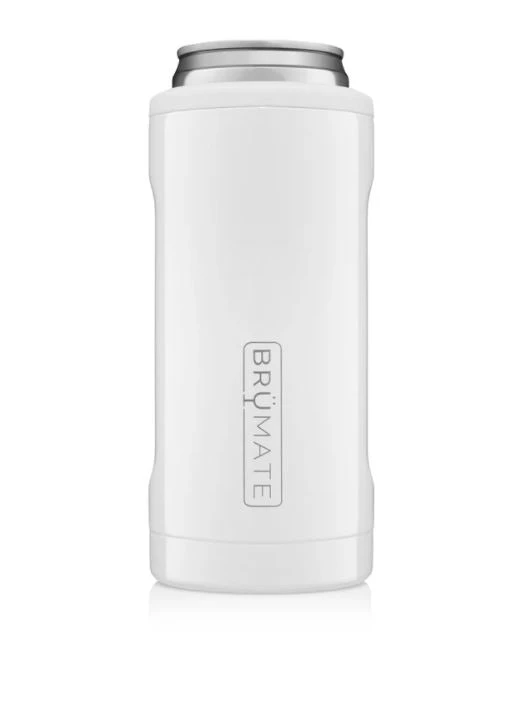 The BruMate Hopsulator Slim is the world’s first triple-insulated, stainless steel can-cooler designed exclusively for 12oz slim cans. BevGuard technology guarantees your drinks stay ice-cold and refreshing, without the metallic aftertaste other stainless steel products often have. Push-Lock Technology makes inserting and removing your cans a breeze. If you can’t stand the heat, don’t sweat it. The Hopsulator Slim keeps all of your favorite 12oz slim canned beverages icy-cold, no matter how hot the party gets. Works with White Claw, Truly, Michelob Ultra, Corona Light, Red Bull, and others (Doesn’t fit Heineken).Â