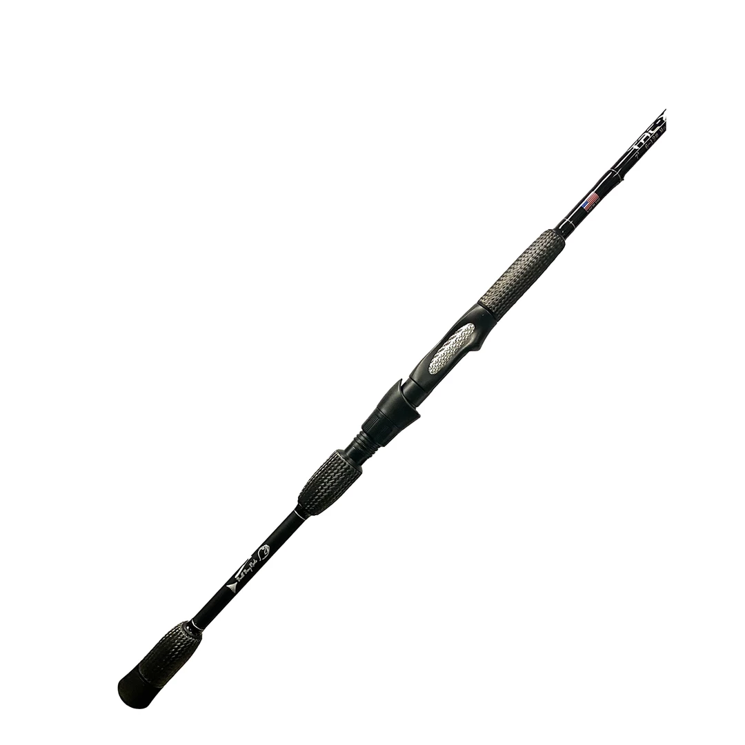 The Stealth Sniper embodies its name- a weapon designed to shoot far and accurate- the Stealth Sniper rod was designed to do just that. What separates the Stealth Sniper from other rods is not only the performance but the feel. The blank tip action on the Stealth Sniper models helps load the baits for that long cast but the responsive tip gives you more control on where you place the lure. This rod features black plated tangle free guides that are marine grade stainless steel frames (SS316) which have an upward slope to them that allows line to roll off the frames without tangling, giving anglers more efficient casting. Our custom made blanks featuring a proprietary 32 ton carbon and graphite combination is what gives our rods a unique blend of power, sensitivity, and low weight. Next phase is the handle. We built our grips to be comfortable and easy to cast. Sleek high density EVA grips tapered perfectly into the reel seat for no jagged edges hitting your hand, just enough grip length for putting some pressure when fighting fish, but not over killing it where you have too much excess grip which = weight. The reel seat features a carbon fiber insert and ergonomic shape so you don’t have a bulky piece in your hand but a super sensitive and comfortable place to hold your reel. Whether you are a tournament angler or weekend warrior, this rod will do exactly what you need for a lifetime.