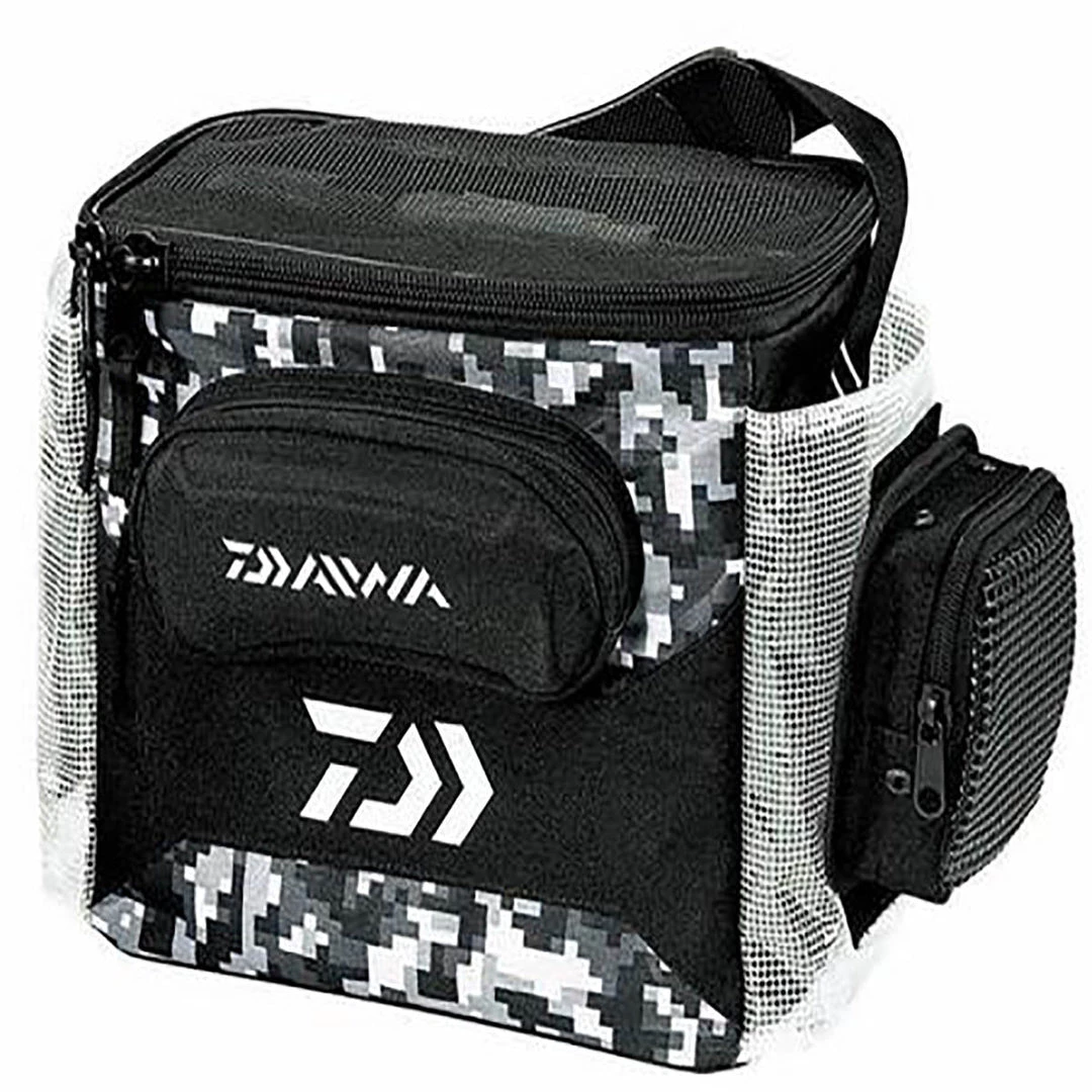 Daiwa’s new versatile jig tote that holds an assortment of lures and a 3600 Daiwa box for additional tackle. The 1-inch and 1 ½ -inch jig slots can hold a variety of jigs, spoons and hardbaits. The tote holds one 3600 Daiwa Box for additional hooks, terminal tackle and rigging. A handy Leader Wheel Holder is ideal for in-the-field rigging. Your sunglasses will stow clean and dry in the dedicated Sunglasses Holder. Additional gear can be stored in the roomy Side Compartments. A broad Shoulder Strap carries the load for easy transport. Wash Through Design allows rinsing jigs in place. The tote is well suited for the traveling angler on guided or partyboat trips. If you are a jig caster on the move there is no better way to carry the quiver of lures then the  D-VEC JIG AND BOX TOTE.