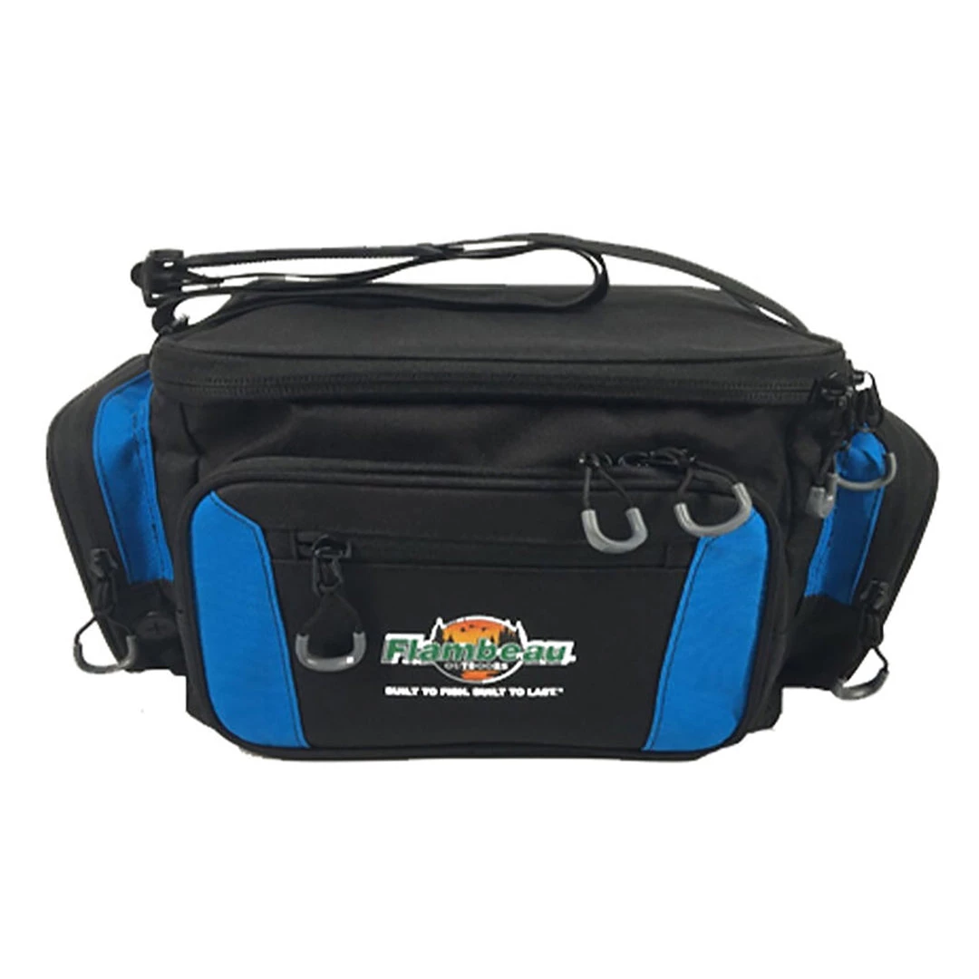 Keep your tackle organized and easy to access with the Flambeau Adventurer Series Tackle Bag. This fishing bag delivers simplicity and functionality that you’ll appreciate on the water. The easy-access flip-up lid is secured with G-hooks, while a holster on the front holds your pliers or multi-tool. Two external mesh pockets let you stash wet items. The Flambeau Adventurer Tackle Bag holds three included 4007 Flambeau utility boxes. 2″ webbing handle and a shoulder strap provide easy carrying options.