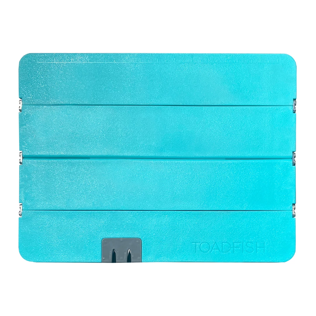 Full size 12’’x16’’ folding cutting board designed to easily fold, lock, and stow anywhere. Fits easily into kitchen drawers, boat boxes, tackle bags, and travel packs. When unfolded, it locks together to match the feel of a 1-piece design. Features non-slip rubber feet to grip any surface and a built-in knife sharpener so you’re never left with a dull blade.