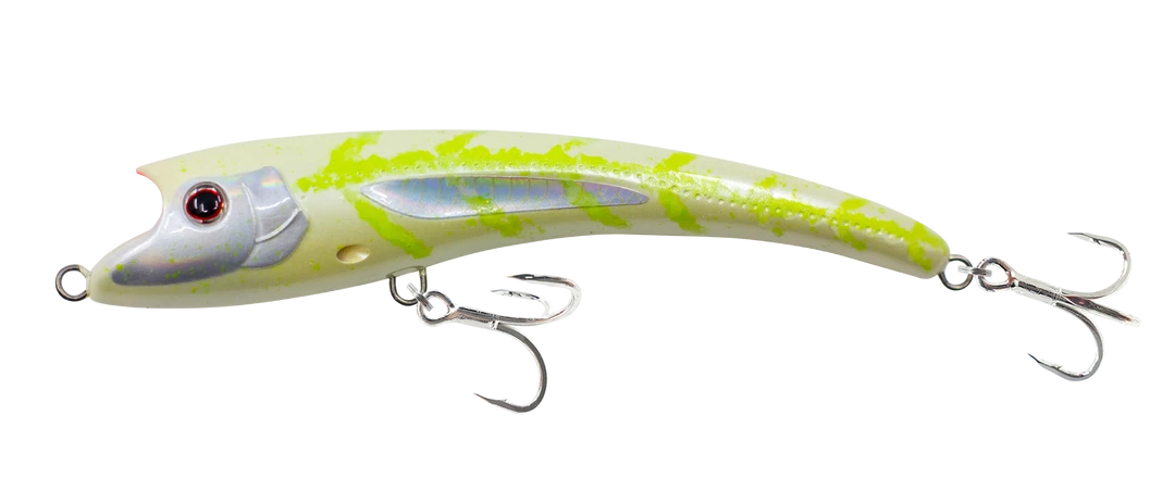 The Maverick 115 is a unique floating stickbait, surface walker and popper all in one lure. There are so many ways to use this unique lure. It can be used with a long slow pull as a swimming stickbait with bubble trail, twitched on the surface, used as a walk the dog lure and also used as a subtle popper. It is best when worked slow, and has a huge wobble and roll at very slow speeds. Ideal for any predatory fish that can be caught on a surface lure, and with the variety of retrieves, is super fun to fish. The bubble chambers on the side add turbulence when retrieved adding to the already dynamic action.