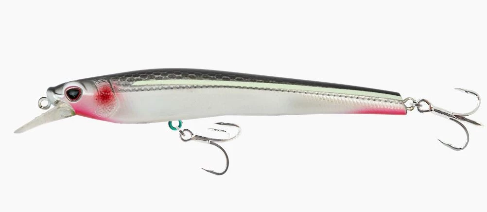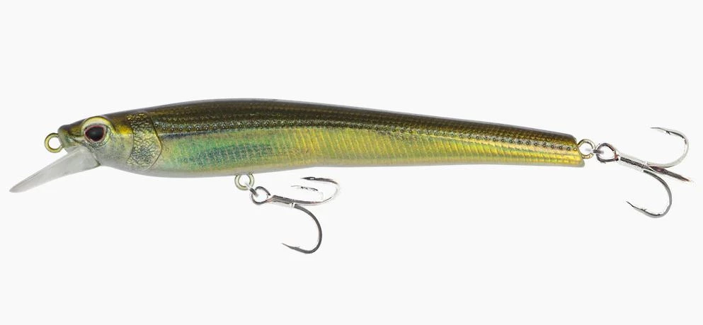 The Nomad SHIKARI 95 is a long-casting, shallow diving, slow floating jerkbait with a tungsten weight transfer system. The internal weight slides backward into the tail when casting to maximize distance, and then rolls forward when being retrieved to balance the lure and keep it perfectly level.