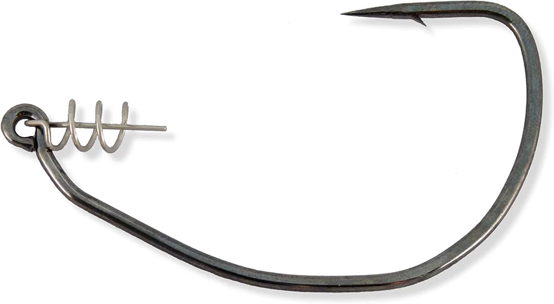 Beast Hooks with TwistLOCK® Centering-Pin Spring (CPS) are designed for weedless-style rigging of larger plastics like big swimbaits, flukes, tubes and creature baits. With its TwistLOCK® Centering-Pin Spring (CPS – patent pending) attached to the hook eye, baits can be permanently secured by inserting the pin in the center of the nose of a soft plastic, which can then be screwed onto the TwistLOCK® coil spring to rig perfect everytime! Different Size springs are matched to hook size to maximize holding power. Quick-drop shank below eye allows for rigging fat-headed baits, and maximum gap allows for improved hook sets because of better bait clearance. The non-movable weight attached (5130W) not only helps to sink or swim a rigged bait down into the strike zone, but because the weight is positioned so low on the shank, it provides a keel effect. As a result, when rigging large swimbaits weedless-style, plastics swim naturally (as opposed to rolling or flipping where weights are inserted inside soft baits). Ideal for both fresh and saltwater fishing, features include a TwistLOCK® Centering-Pin Spring (CPS – patent pending) attached to the hook eye, maximum gap, a XXX-strong forged shank, Super Needle Point, and black chrome finish.