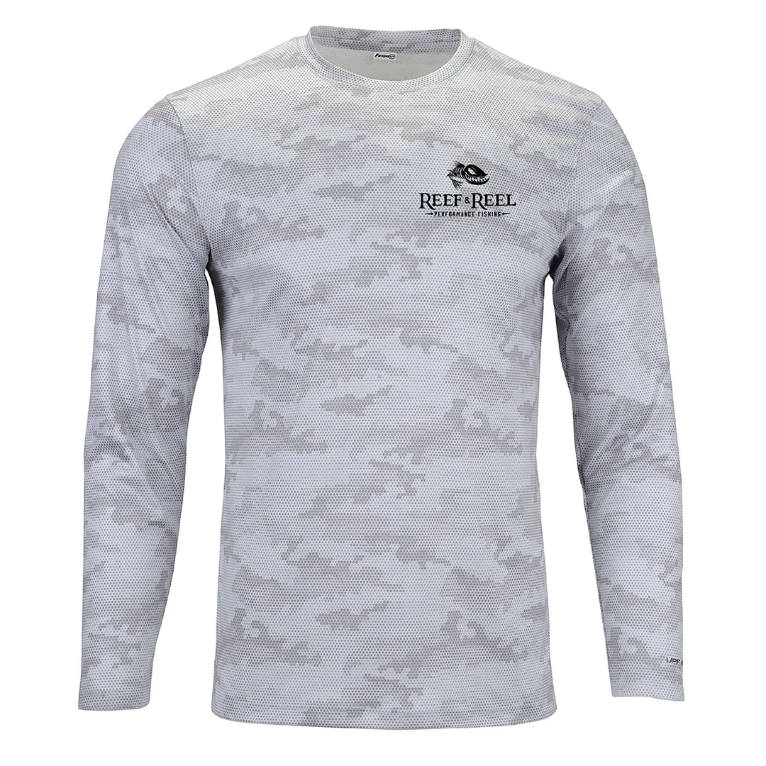 Nothing like some good camo to hide the predator from it’s prey. Reef & Reel Presents the Performance Fishing Camo UV protection long sleeve fishing shirt. This is one of the ultimate shirts that protect anglers from the harmful effects of the sun’s UV rays. This shirt will keep you cool and comfortable all summer long! On the sea or in the sand Reef & Reel will keep you looking and feeling great!