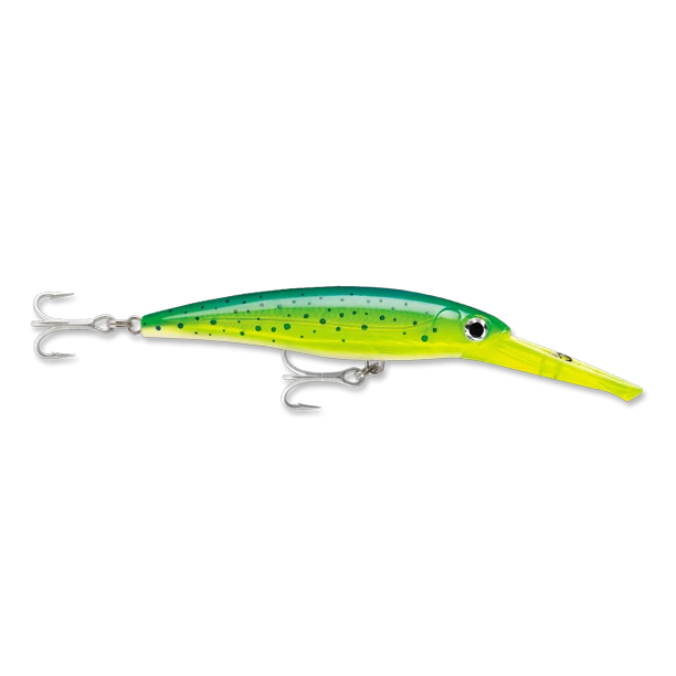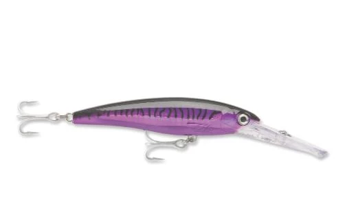 X-Rap® Magnums® run perfect right out of the box, no wasted time tuning. The massive diving-lip takes the X-Rap® Magnums deep… unassisted. Nothing to hinder the action. Each dives to its preset depth…the XRMag10 to 10 feet, the XRM15 to 15 feet, etc. Run up to 13 knots for big game fish worldwide. Big water patterns compliment the X-Rap construction standards – textured translucent body, internal holographic foil, 3D holographic eyes. Built saltwater tough with 3X split rings holding 4X VMC® Perma Steel hooks. Some models feature colored lip for added attraction.