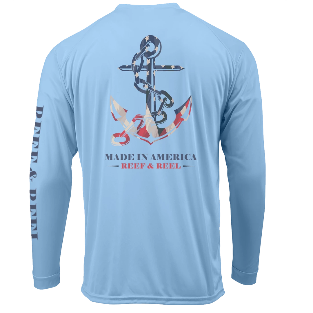 Reef & Reel knows that all the best products are Made in America. This shirt is packed with all the technology that will allow you to fish all day long! UPF +50 and Moisture Wicking technology provides all the comfort you need!