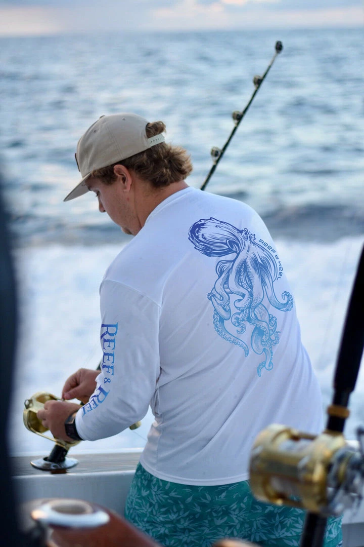 When you go diving to the depths, you may be lucky enough to spot a beautiful Octopus. Reef & Reel brings the awesomeness of this creature to life with our Dive Deep line of apparel. Both on the sea or in the sand Reef & Reel will keep you safe and dry.