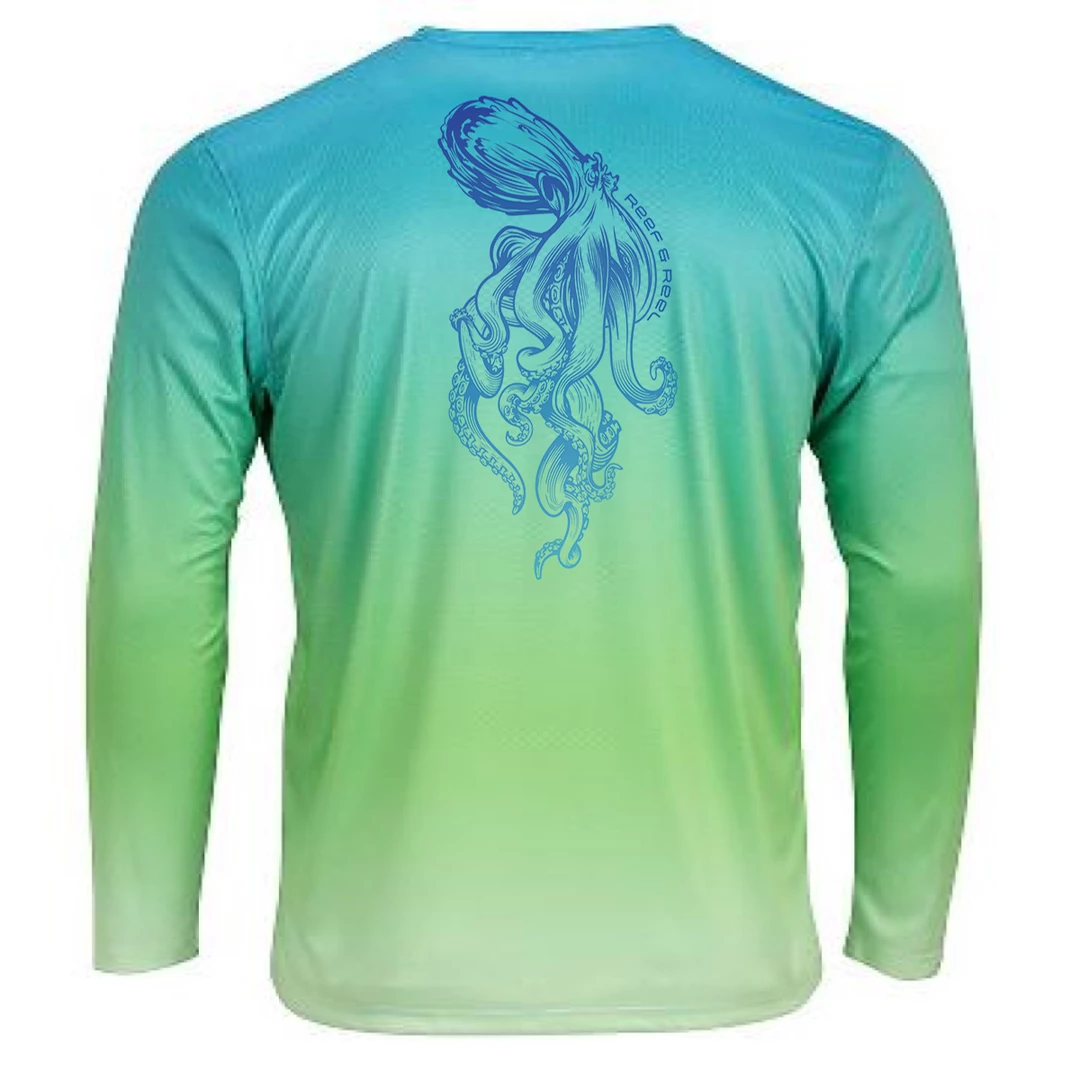 When you go diving to the depths, you may be lucky enough to spot a beautiful Octopus. Reef & Reel brings the awesomeness of this creature to life with our Dive Deep line of apparel. The Reef & Reel pro series offers even better technology and protection than our performance series shirts.
