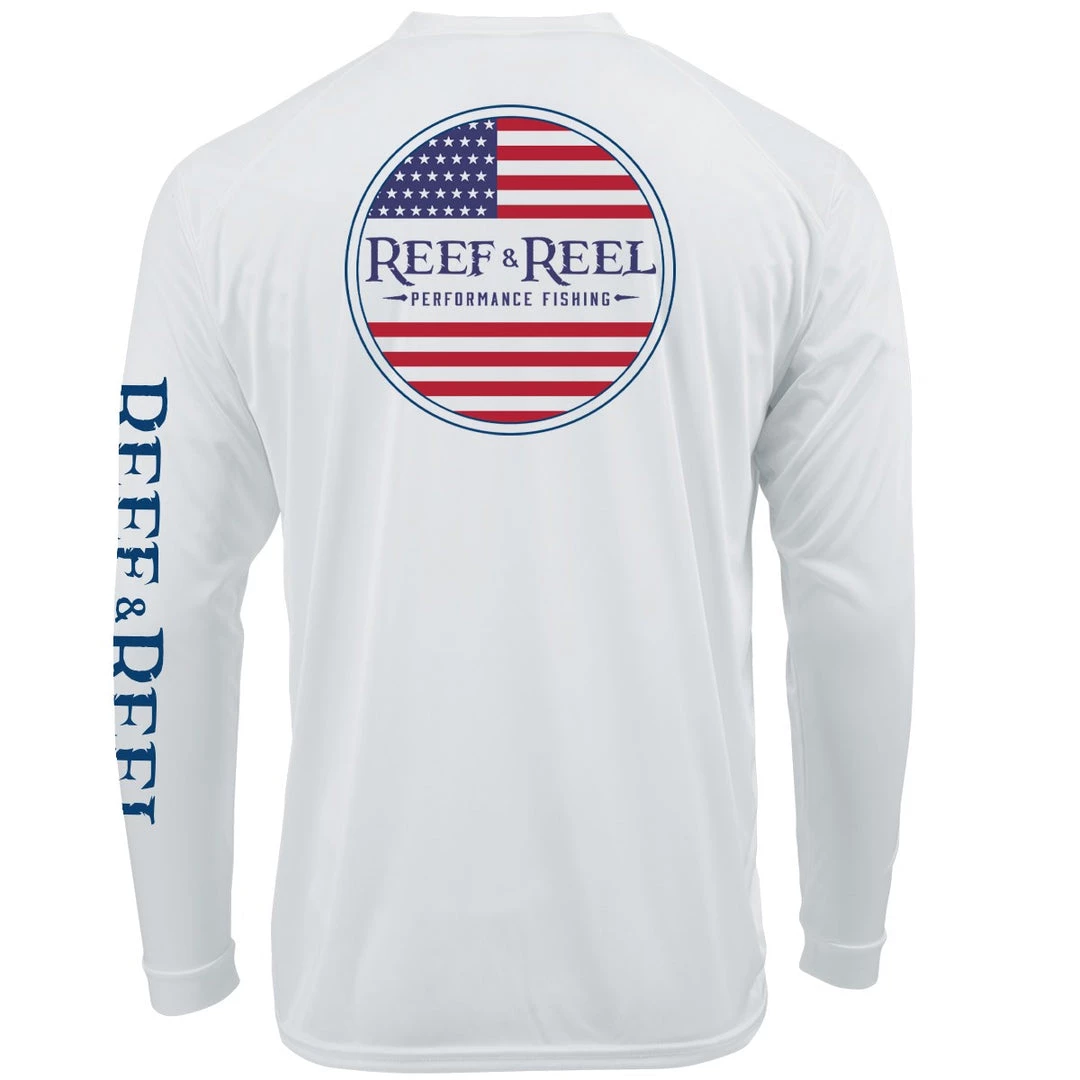Nothing’s more American than the Flag, Apple Pie, and Fishing. Show your pride for this great country with the Reef & Reel Flag Circle shirt! Weather on the sea or in the sand, Reef & Reel will keep you safe and looking good!