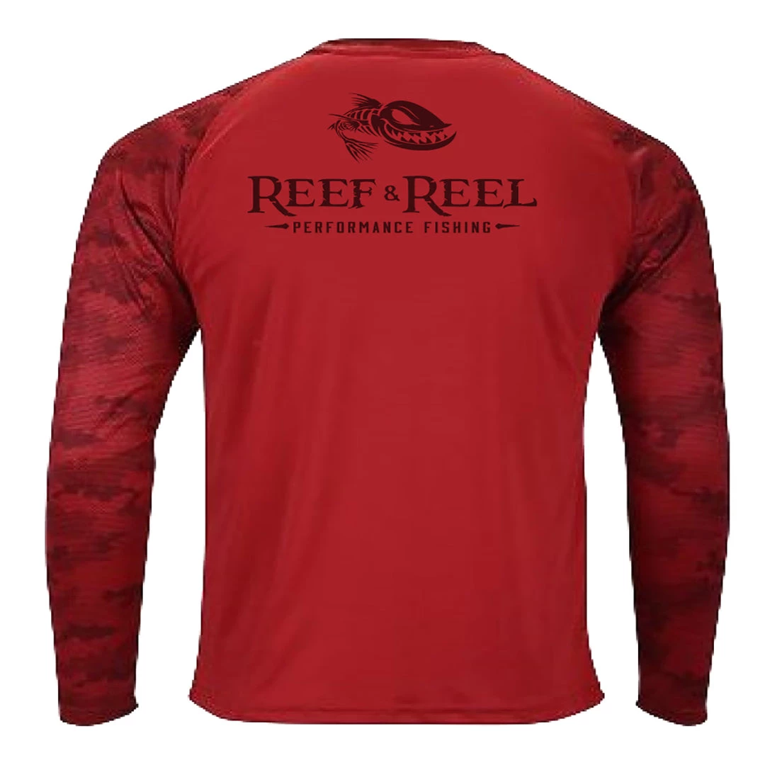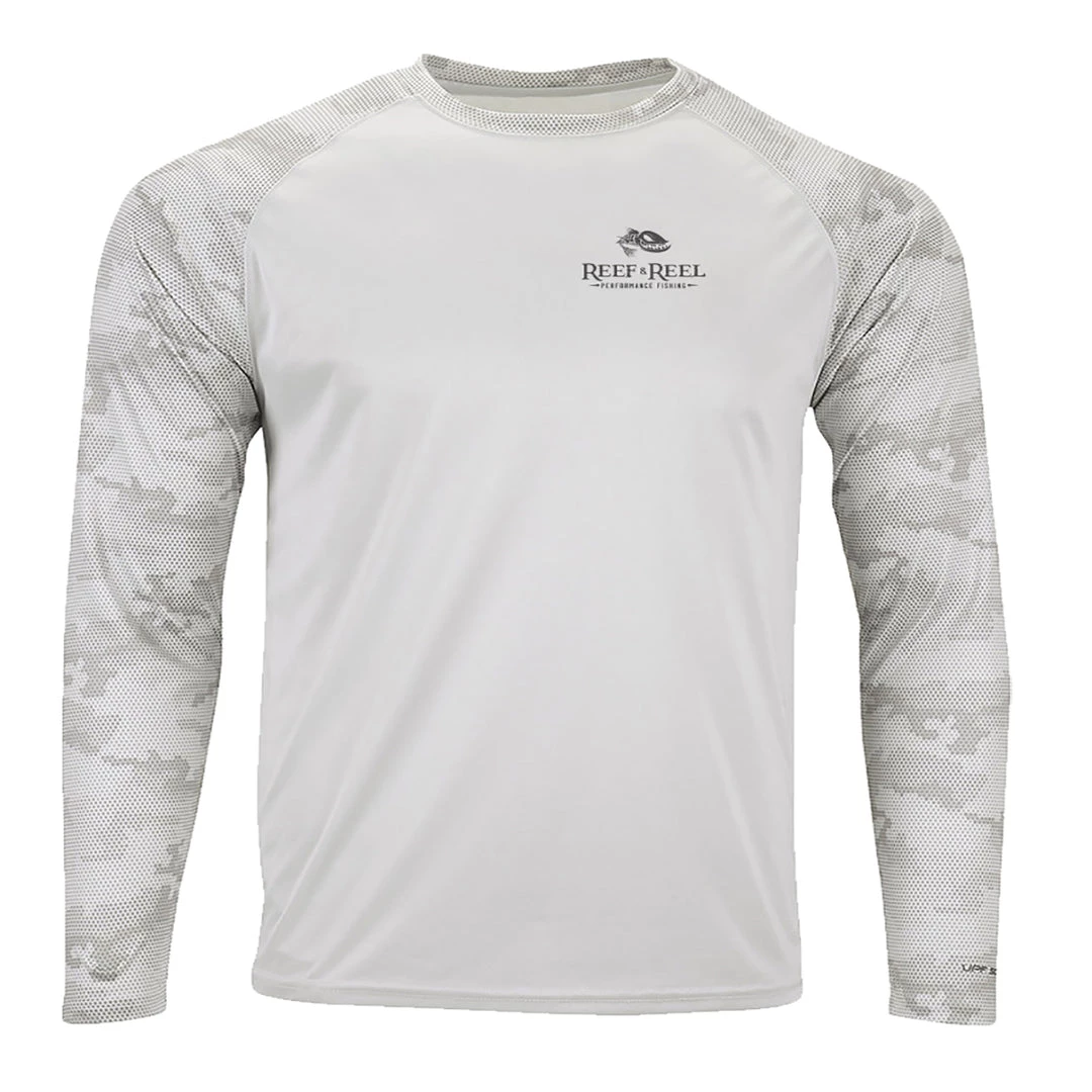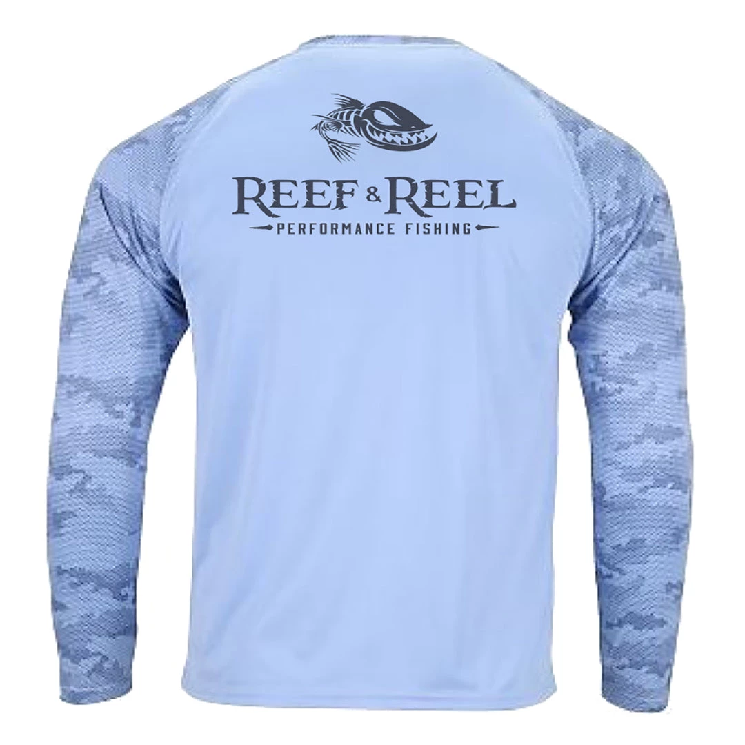 Nothing like some good camo to hide the predator from it’s prey. Reef & Reel Presents the Performance Fishing Camo UV protection long sleeve fishing shirt. This is one of the ultimate shirts that protect anglers from the harmful effects of the sun’s UV rays. This shirt will keep you cool and comfortable all summer long! On the sea or in the sand Reef & Reel will keep you looking and feeling great!