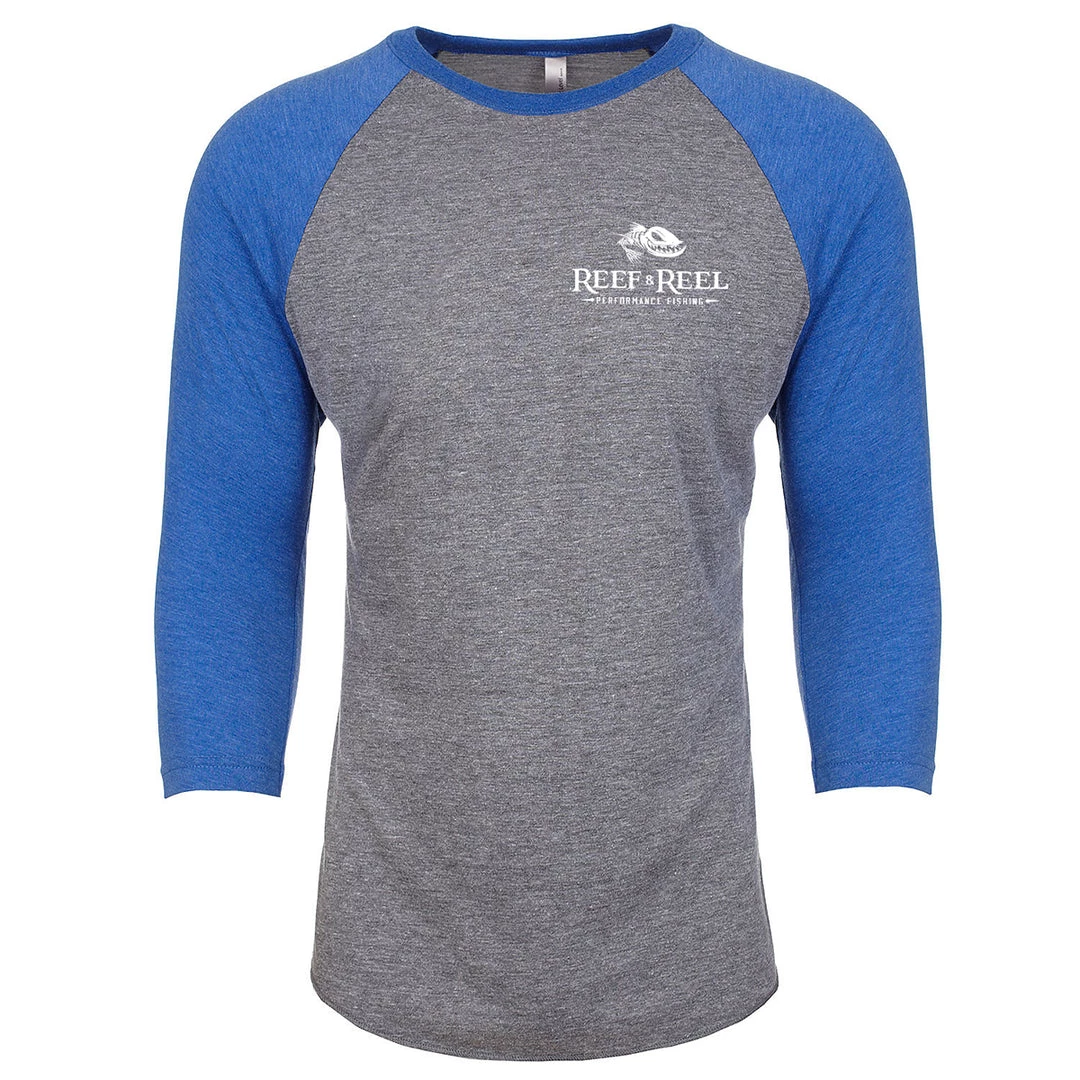 The Reef & Reel 3/4 sleeve raglan t-shirt will help keep you warm both on the sand or on the sea! It features our iconic logo on the front pocket.