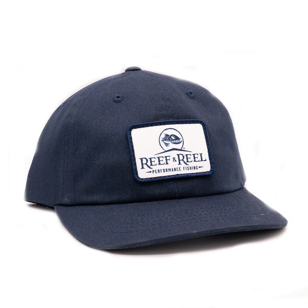 The Reef & Reel Low Profile Hat is a Premium Cotton, 6 Panel, Unstructured Crown hat with a Pre Curved Visor. Rounded out with a matching Premium Cotton Back Strap and a Brass Clasp. One size fits most.