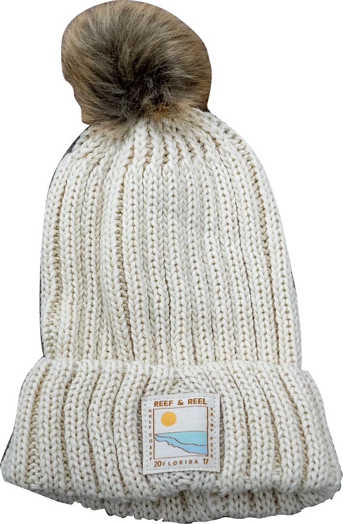 Keep your head nice and warm during the chilly weather with our Ultra-soft Pom Pom style hat with embroidered Reef & Reel logo.