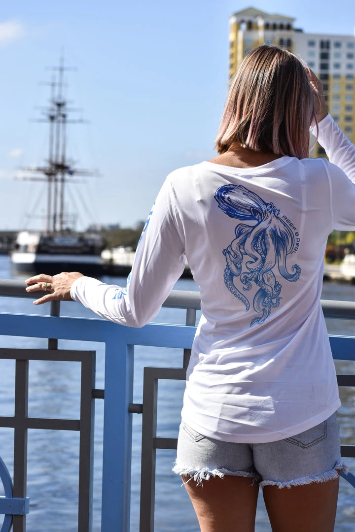 When you go diving to the depths, you may be lucky enough to spot a beautiful Octopus. Reef & Reel brings the awesomeness of this creature to life with our Dive Deep line of apparel. Both on the sea or in the sand Reef & Reel will keep you safe and dry.