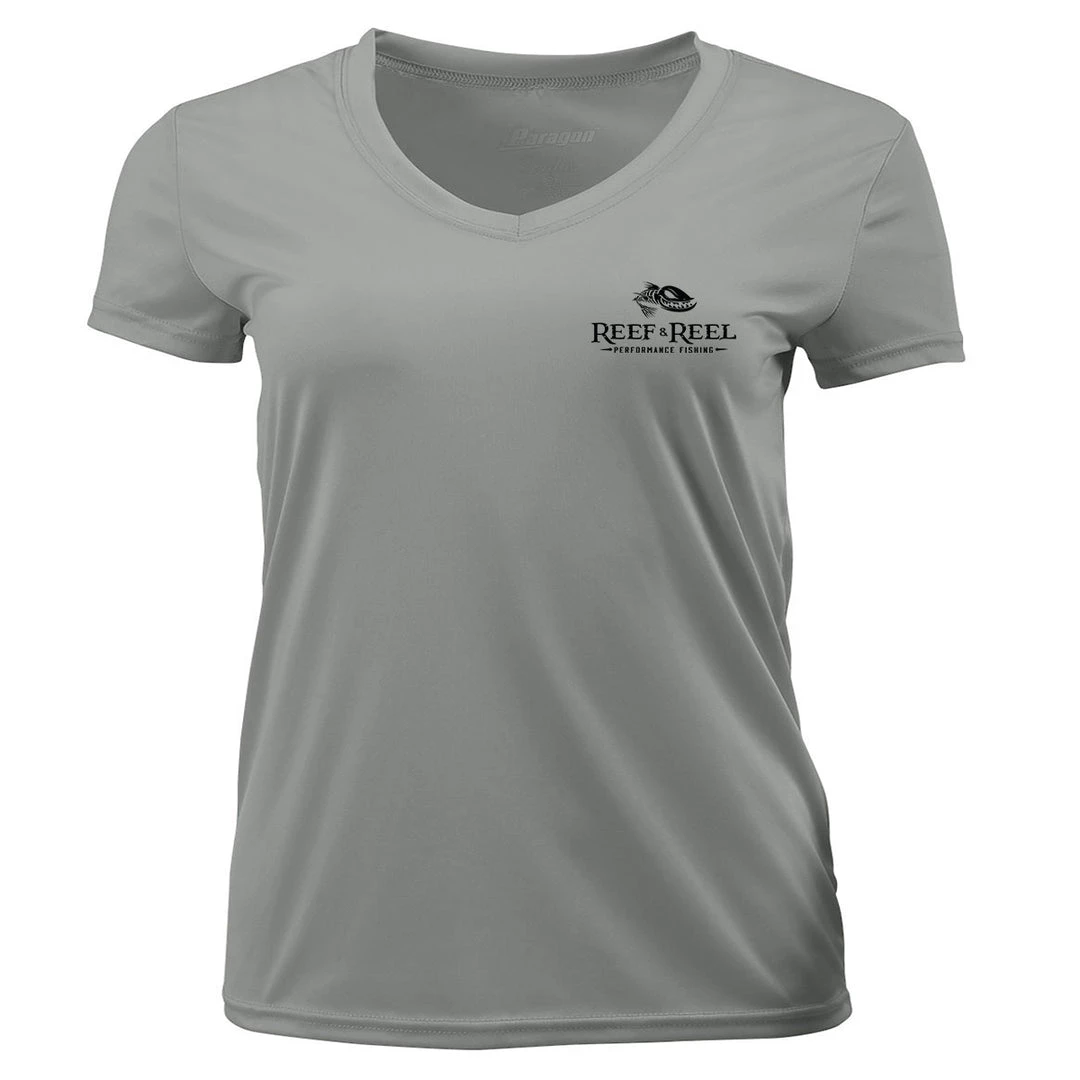 Reef & Reel Women’s Fish On Pocket SS V-Neck Performance Shirt
