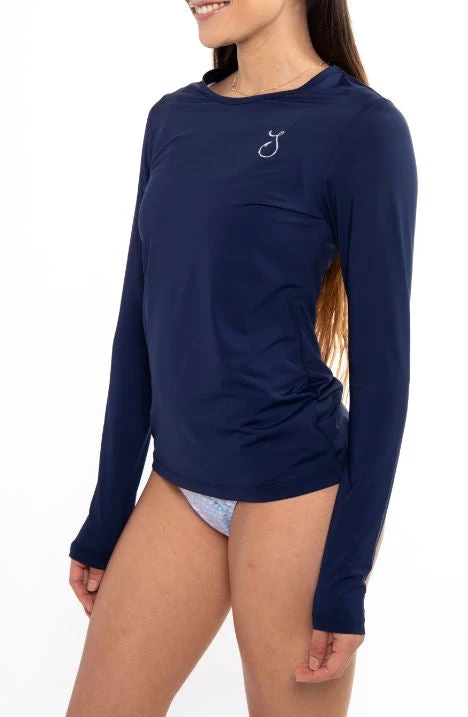 This top is an elevated performance shirt that not only introduces a touch of style but also is a beautiful cover-up. Product Details * UPF +30 Solar Protection * 94% Polyester; 6% Spandex * Micro Fiber Fabric * Moisture Wicking Technology * Thumbholes * Tunic style slits up both sides * Skipper S Logo on Front Fit & Size * Incredibly Soft Fabric with Stretch * Model is approximately 5’5″ with a 34″ Bust and is Wearing a Size S