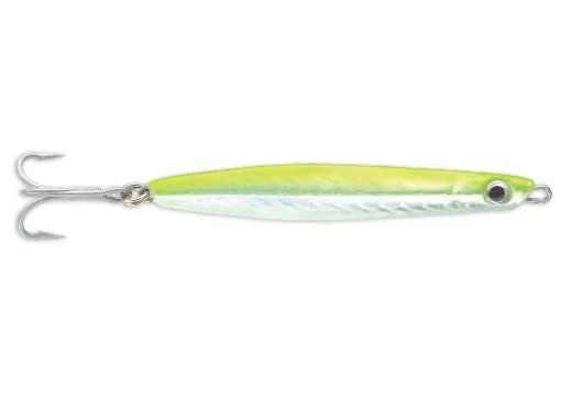 The long symmetrical shape produces an erratic action with a fast to very fast retrieve. High quality foiled finishes add flash and attraction to the amazing action. Good for all kinds of pelagic fish: Tuna, Trevally, Sea Bass, Spanish Mackerel and Kings.